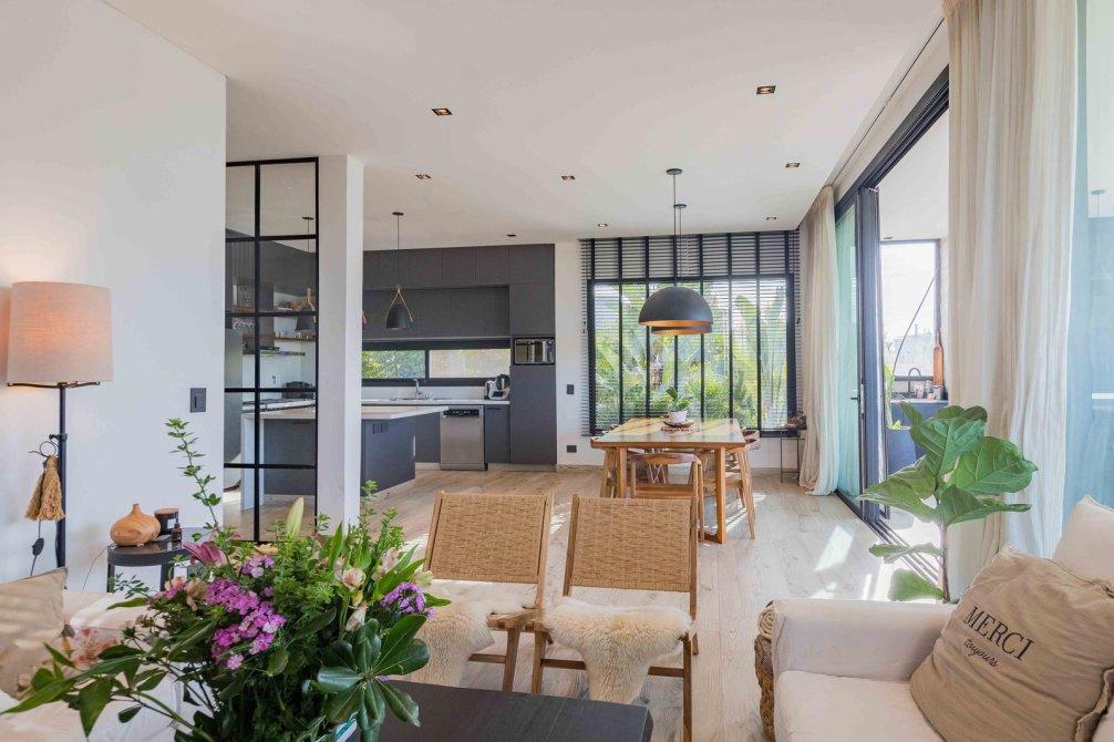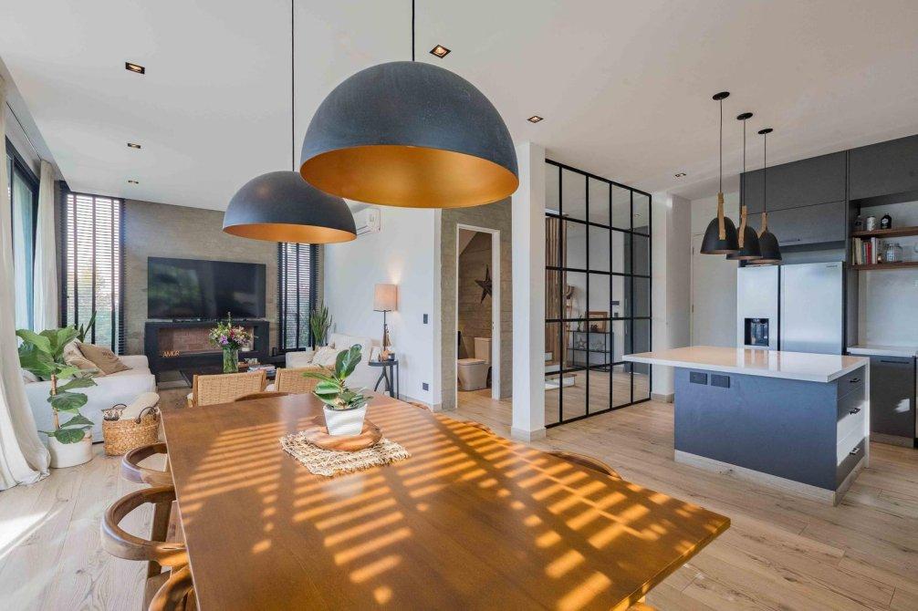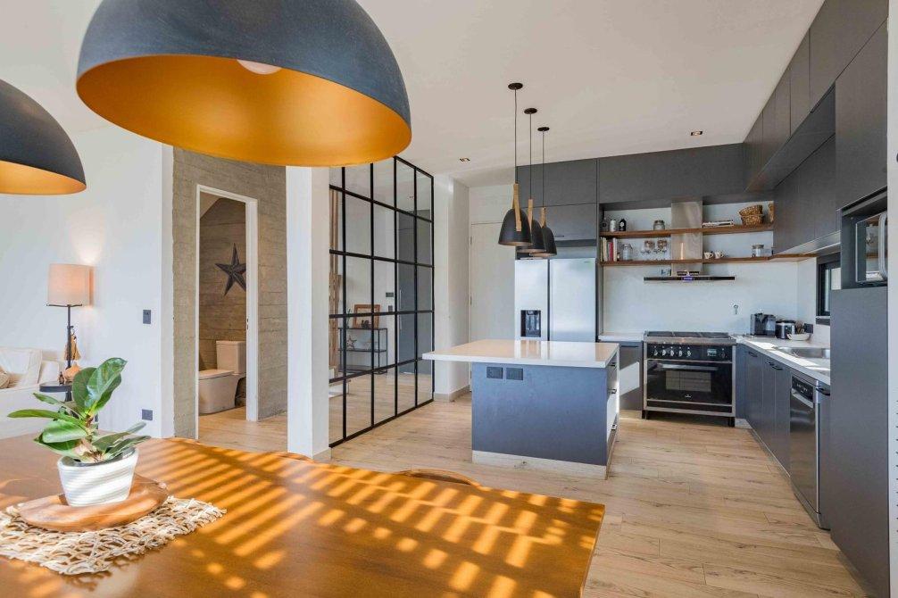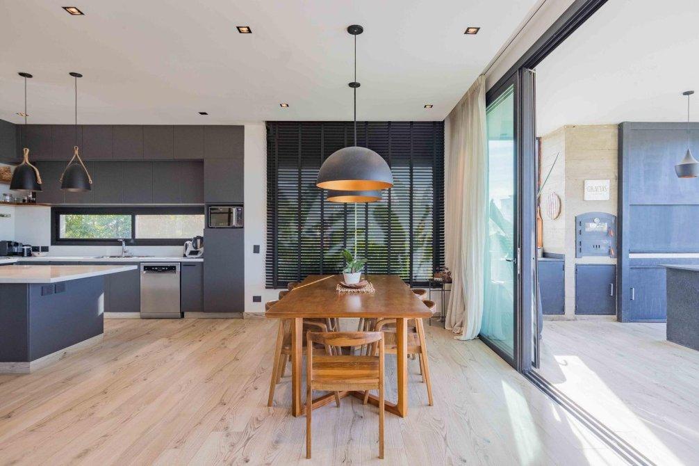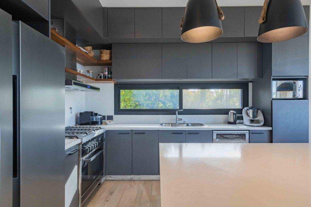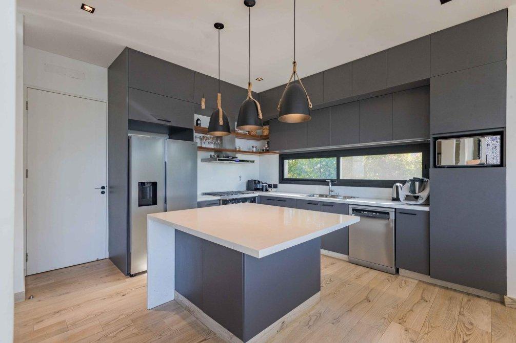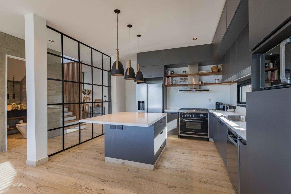 * Cocina semi integrada con isla y muebles de alto y bajo mesada.