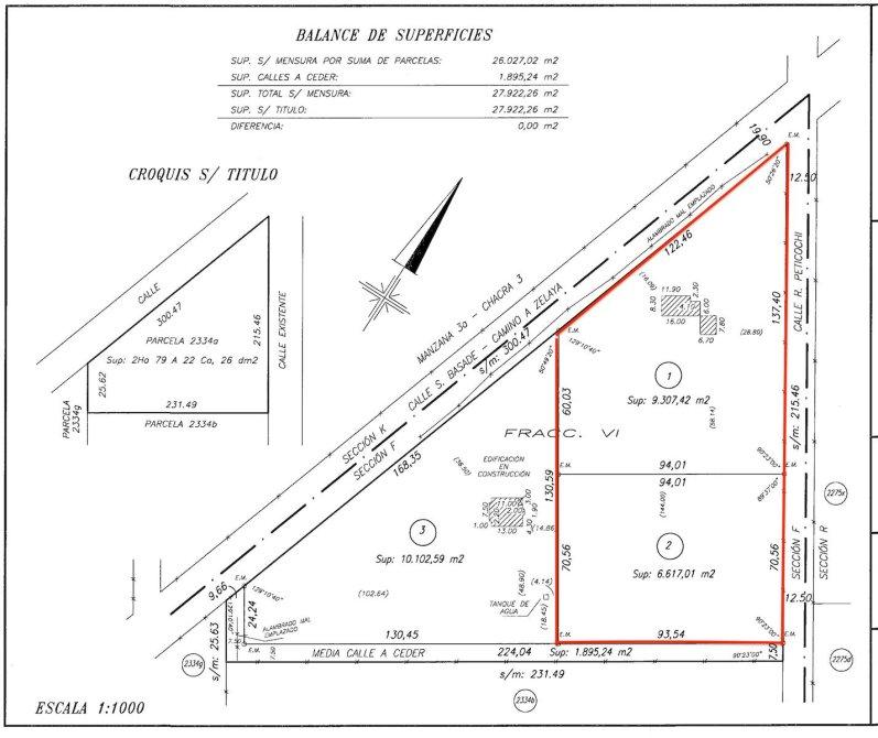 El terreno posee su frente de 122 metros sobre asfalto de la calle Basabe y 208 metros en su lateral sobre calle Petrochi frente a Pilar del Este.