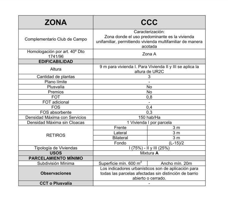 Zonificación Complemetario Club de Campo