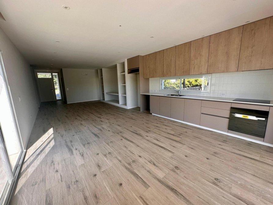 Cocina con muebles bajo mesada y alacena, espacio para heladera.