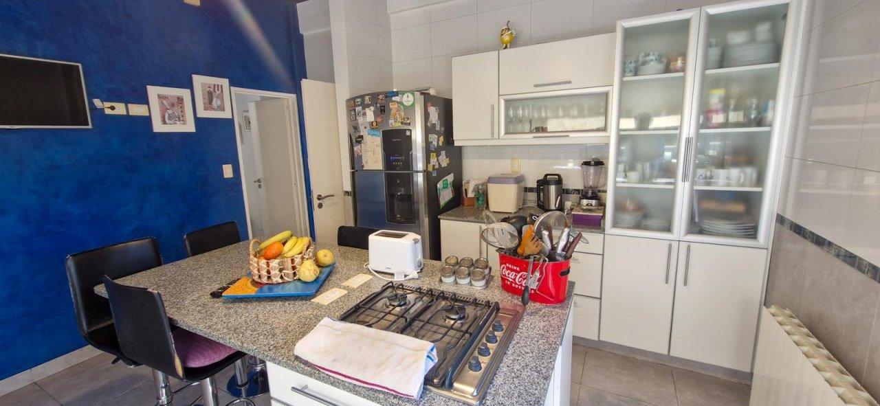 · Cocina muy equipada en lugares de guardado, horno eléctrico empotrado y anafe a gas natural, isla central como mesa de diario. Espacio de lava    vajilla. Este ambiente también cuenta con una de sus paredes revestidas en estuco veneciano.