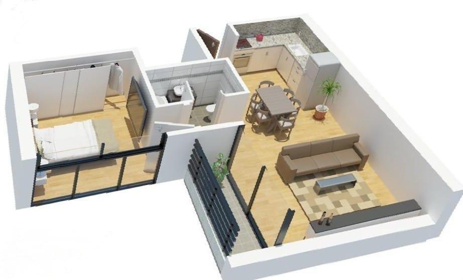 MONOAMBIENTES : Espacio único con una distribución inteligente, que combina el área de dormitorio, sala de estar y cocina. baño completo y balcón.