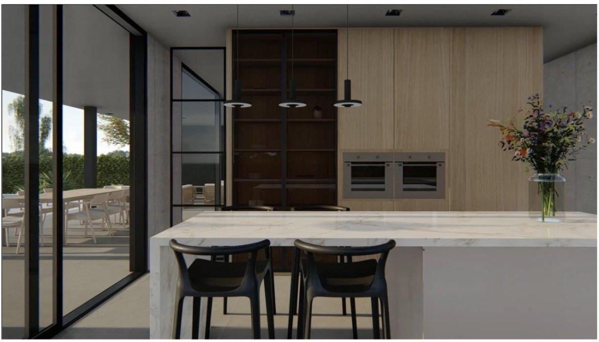 - Cocina con isla semi-integrada al living comedor. Salida a la galería.