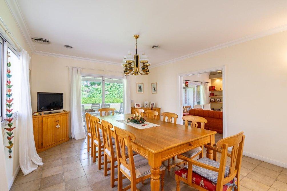 Amplio living comedor con ventanales al jardín, lo que brinda luz natural todo el día.