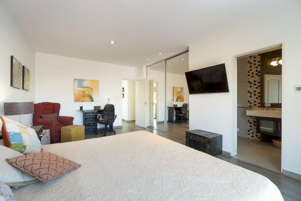 En P.A la casa cuenta con tres dormitorios amplios y cómodos. Dos de ellos disponen de placard integrado y A.A, asegurando un ambiente fresco y agradable. El tercer dormitorio es un verdadero lujo, ya que es en suite, lo que proporciona privacidad y confort. Este dormitorio también está equipado con aire acondicionado y ofrece acceso a un enorme balcón de 38 m², ideal para disfrutar de vistas y momentos al aire libre. El baño es funcional y está diseñado para satisfacer las necesidades diarias.