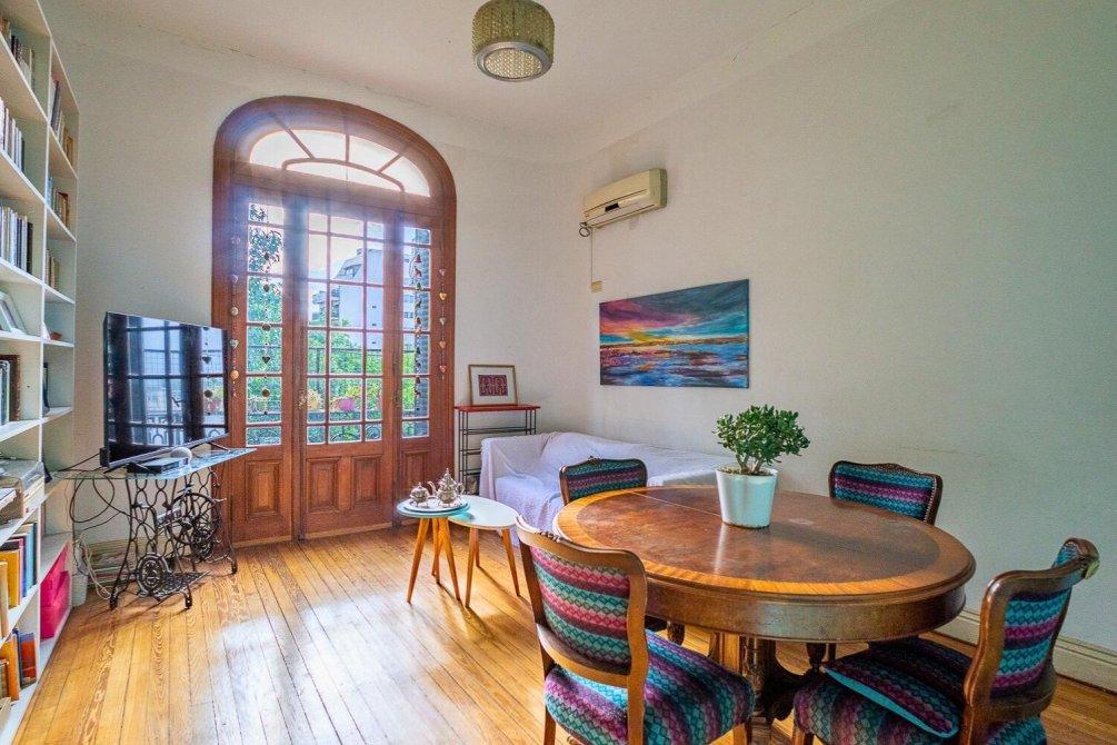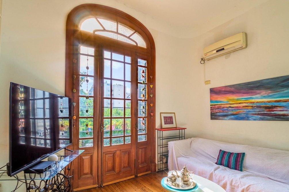 Te presentamos este departamento de estilo con living y 3 dormitorios, techos de doble altura, aberturas de madera originales en todos sus ambientes, doble balcón, con expensas muy bajas y con una amplia terraza de uso común de acceso exclusivo.