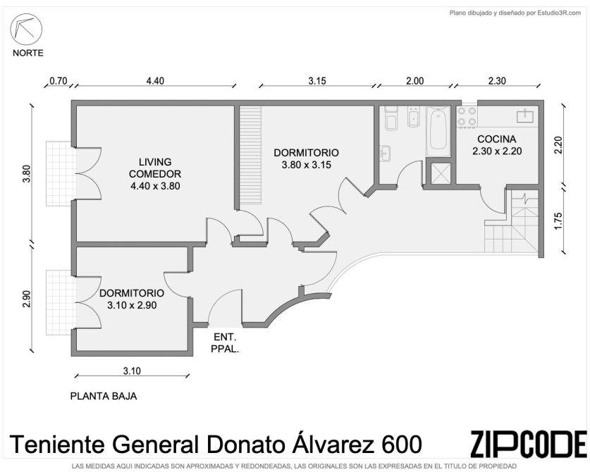 • Salida a dos balcones al frente, desde el living y desde la segunda habitación.
