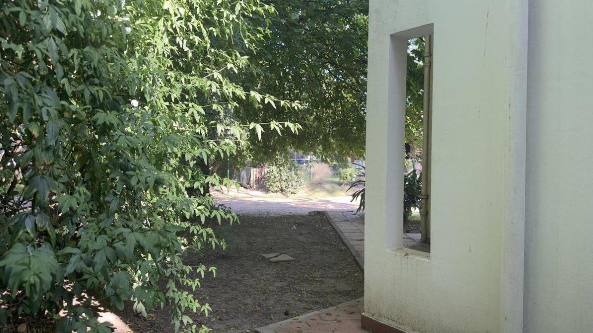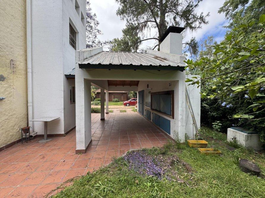 Jardín: Galería con parrilla, mesada y bacha, cochera techada.