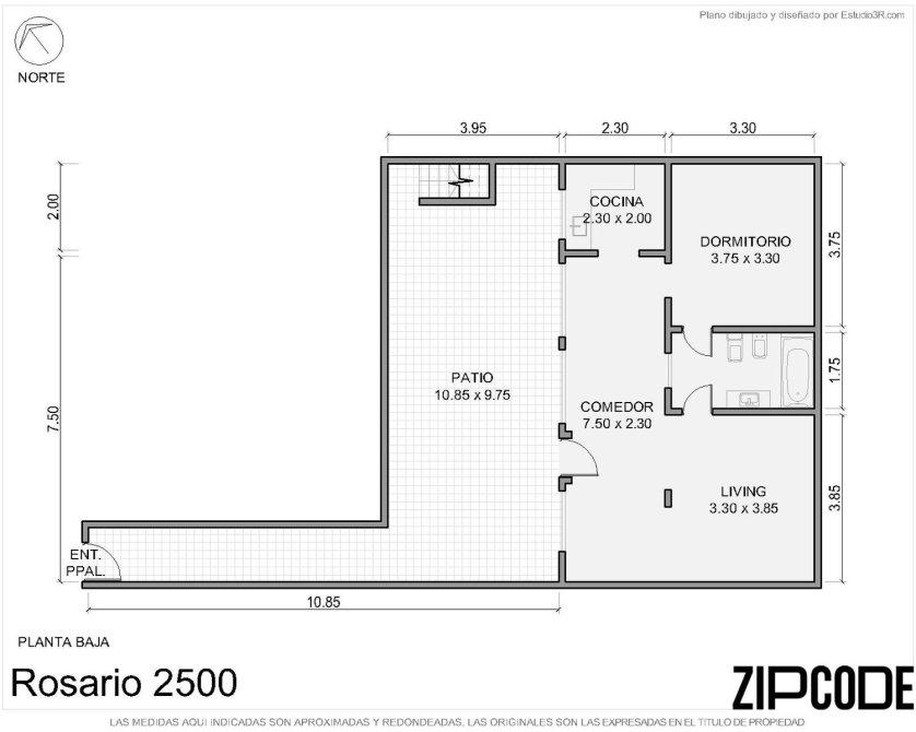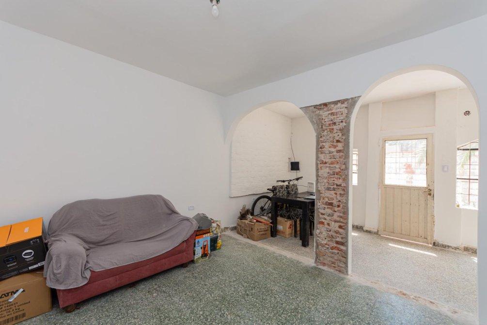 En planta baja ingresamos a un patio con lavadero bajo escalera . Comedor, cocina, living habitación y baño completo. Al baño se puede ingresar desde la habitación y desde el living.