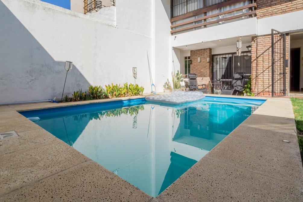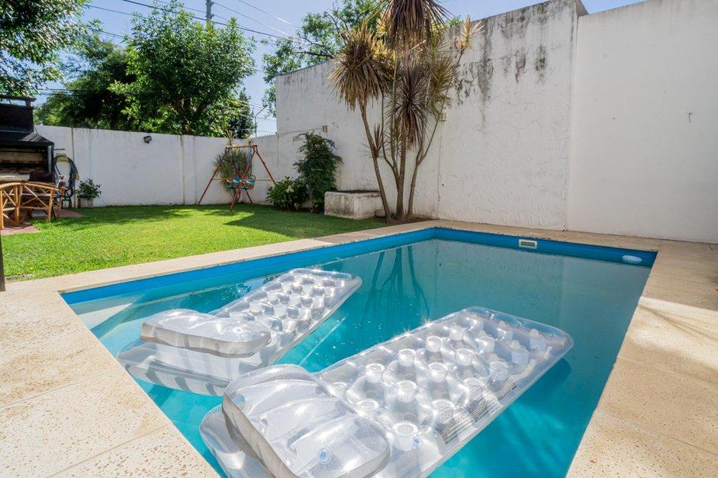 Jardín con pileta y parrilla