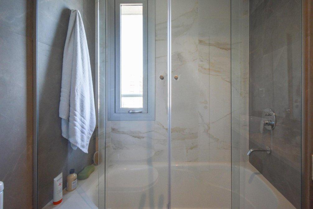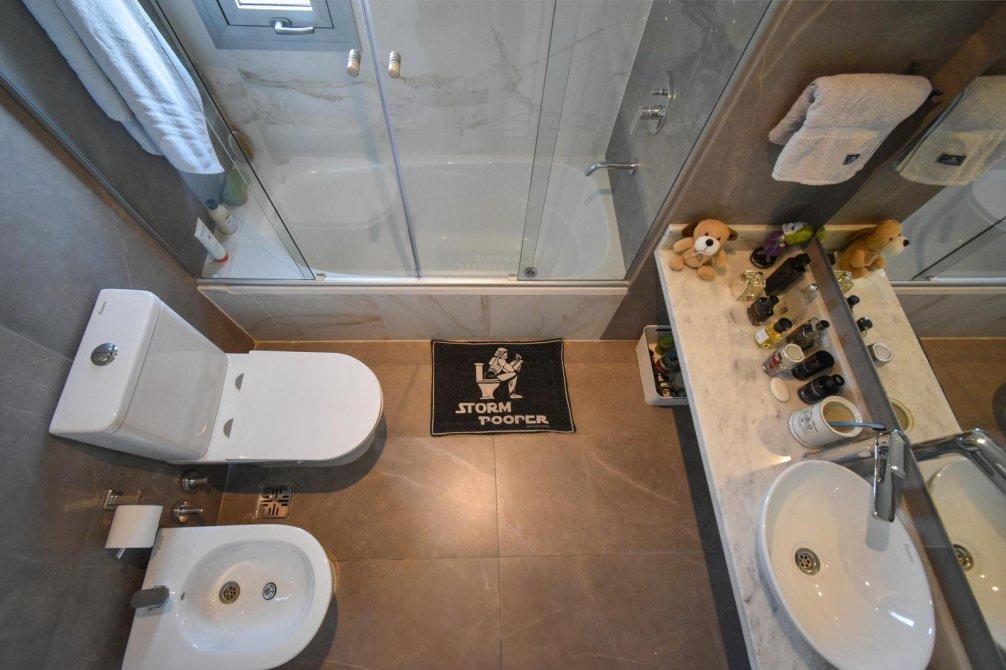 Segundo baño completo con bañera y mampara.