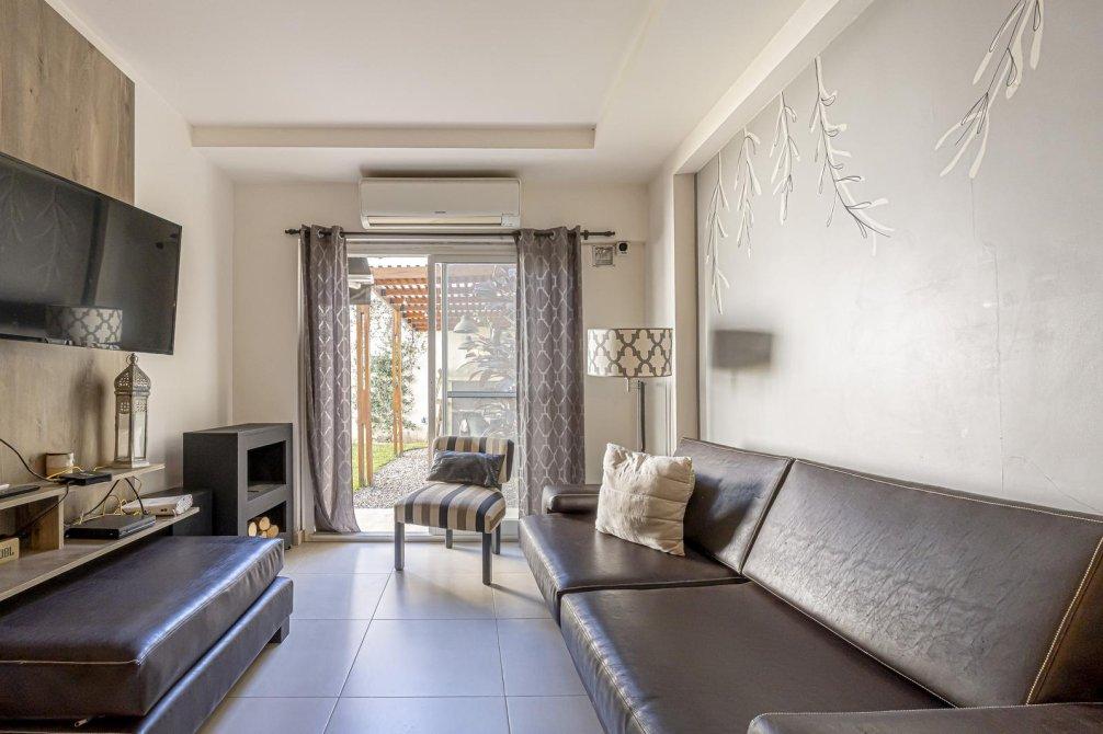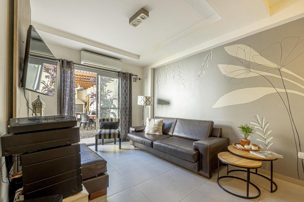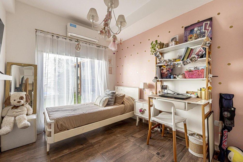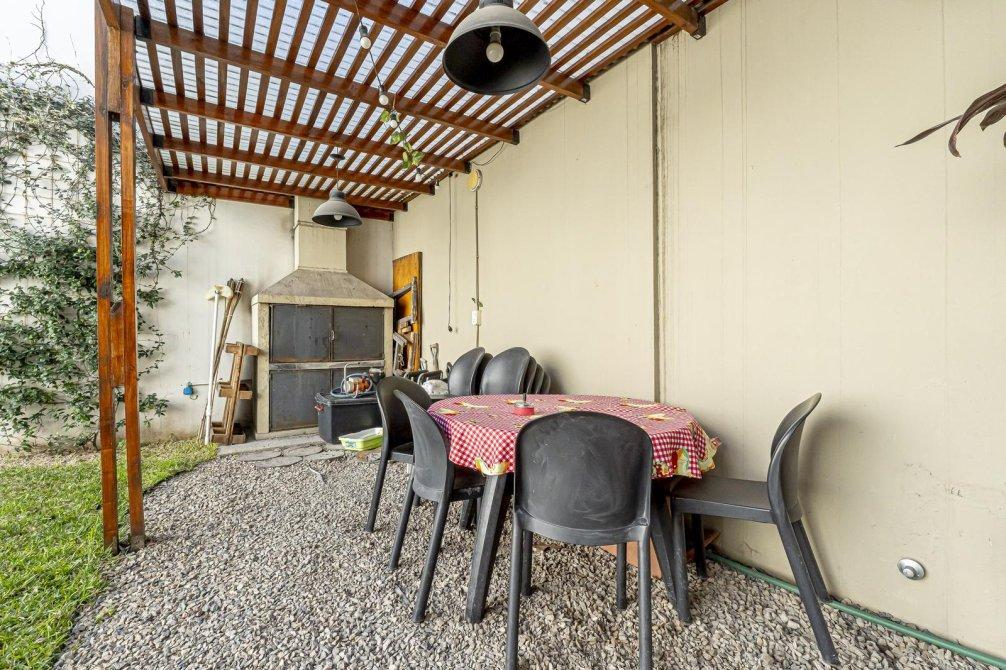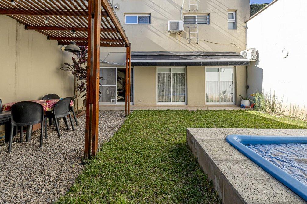 A metros del Boulevard Bilbao, en una zona residencial muy valorada, se encuentra este PH al contrafrente desarrollado totalmente en planta baja, ideal para familias o quienes buscan vivir sin escaleras. Cuenta con patio de ingreso, cocina comedor integrada, living con vista al jardín y tres dormitorios con grandes placares: el principal en suite con salida a un patio; los otros dos con ventanales con vista al área exterior. Baño completo. Salida al jardín con toldo rebatible, quincho con parrilla y pequeña pileta. Un espacio verde perfecto para disfrutar. Todos los ambientes son muy luminosos. La propiedad tiene pocos años de antigüedad, es funcional y está en excelente estado, con detalles y materiales de calidad. Incluye sistema de seguridad con alarma y cámaras accesibles desde el celular, además de aires acondicionados en todos los ambientes.Ofrece mayor comodidad que un departamento y mejores beneficios que un lote propio, con posibilidades de adaptarla según las distintas necesidades. La ubicación es un plus: zona tranquila, con excelente conectividad y próxima a principales avenidas, comercios, colegios y transporte.