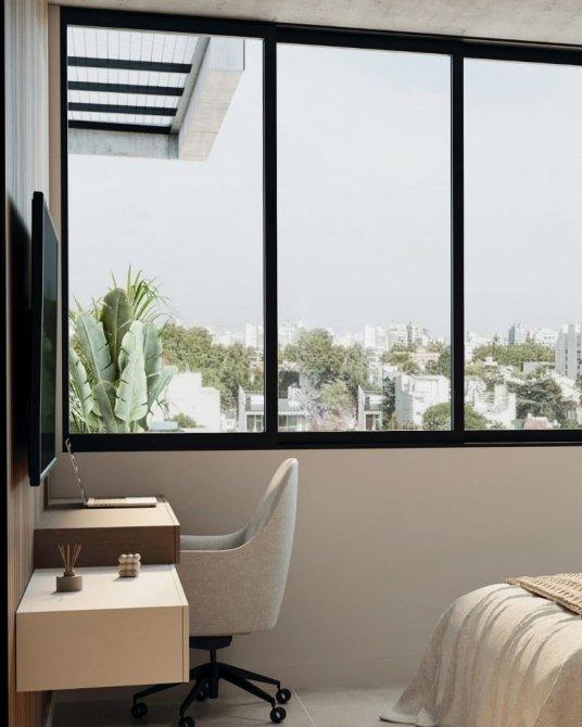 Las unidades cuentan con losa radiante eléctrica y termostatos individuales por ambientes, así como también las preinstalaciones para equipos de aire acondicionado y carpinterías con doble vidrio hermético (DVH), que aseguran confort térmico y eficiencia energética durante todo el año.