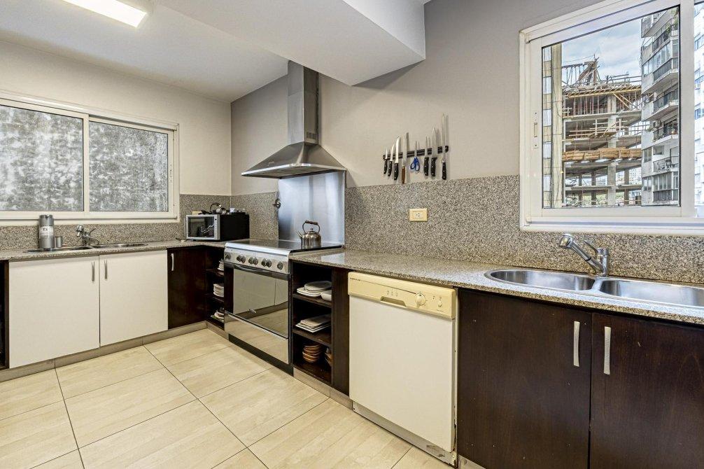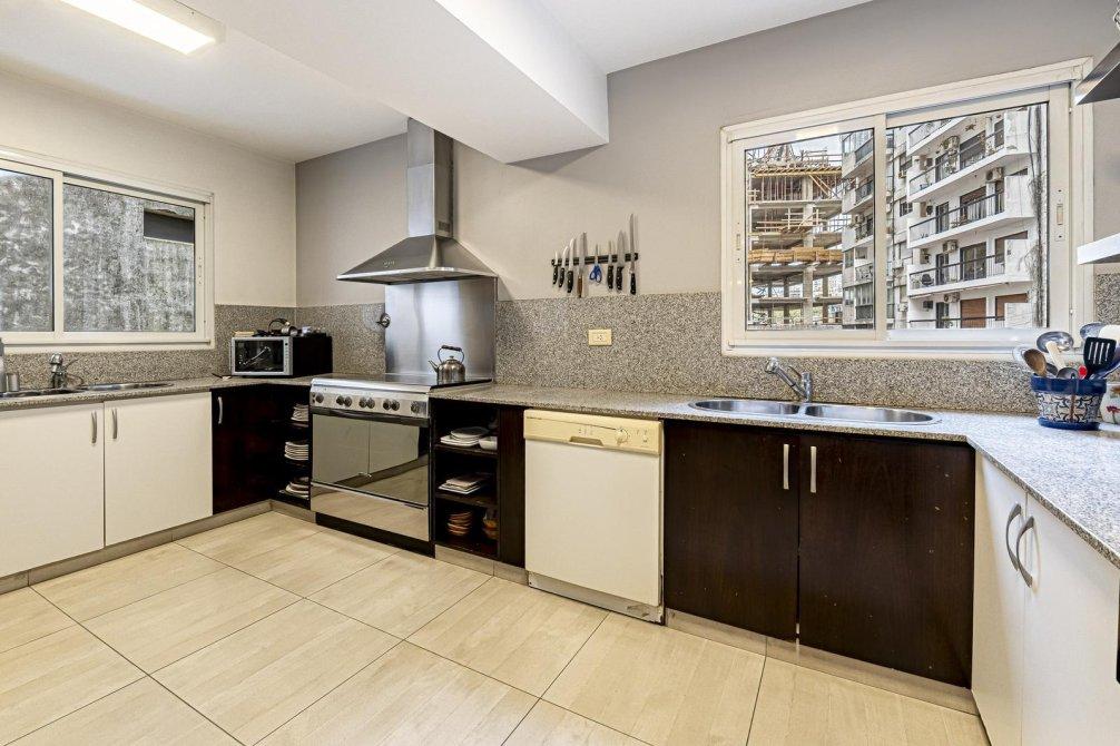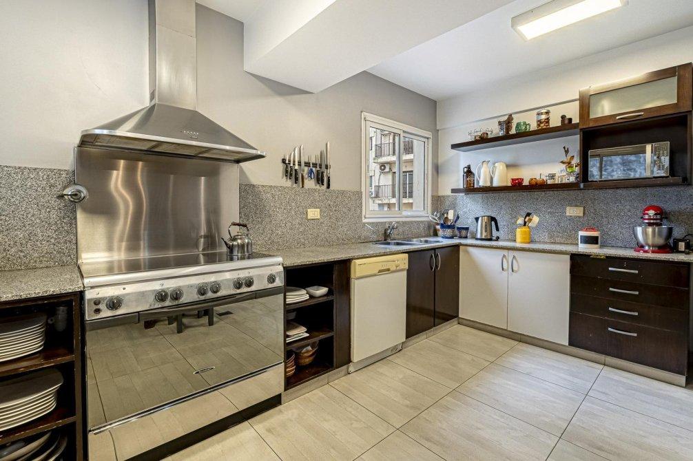 Cocina completa con bajo mesada, espacio alacena a la vista con conexión de lavavajillas, extractor con campana de acero, bacha doble y ventana lo que facilita la circulación de aire e ingreso de luz natural.