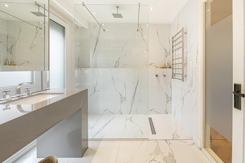 -2 baños completos revestidos en porcelanato + toilette de recepción