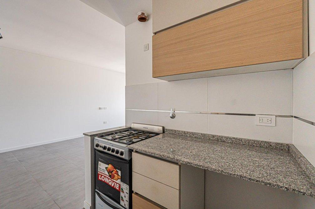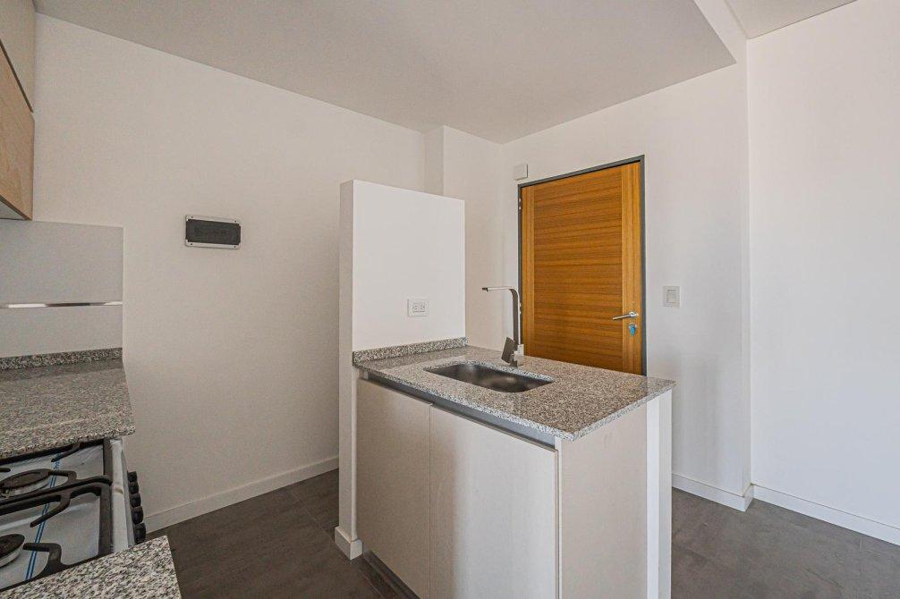 En dirección al contrafrente descubrirás una moderna cocina integrada, equipada con alacena completa, bajo mesada, bacha de acero y grifería monocomando. Espacio para lavarropas, mesada granito gris con ventana, lo que potencia la luminosidad y circulación de aire.