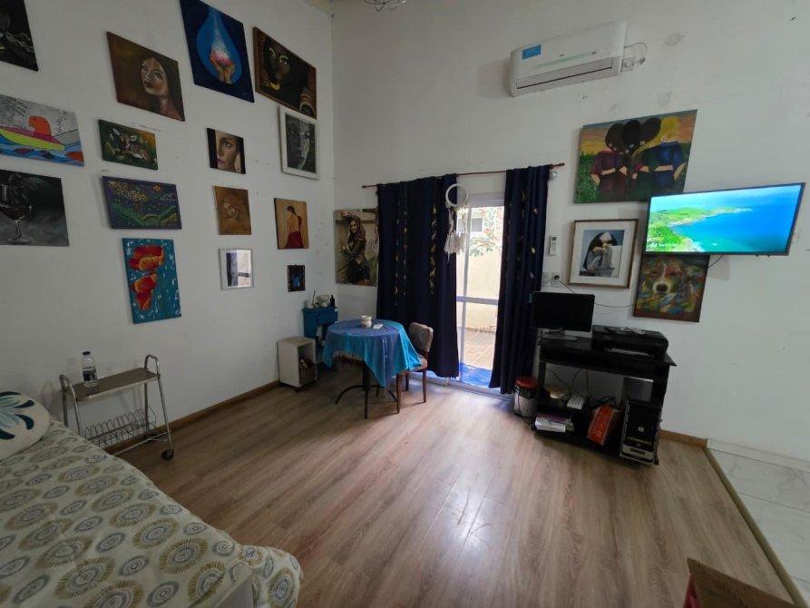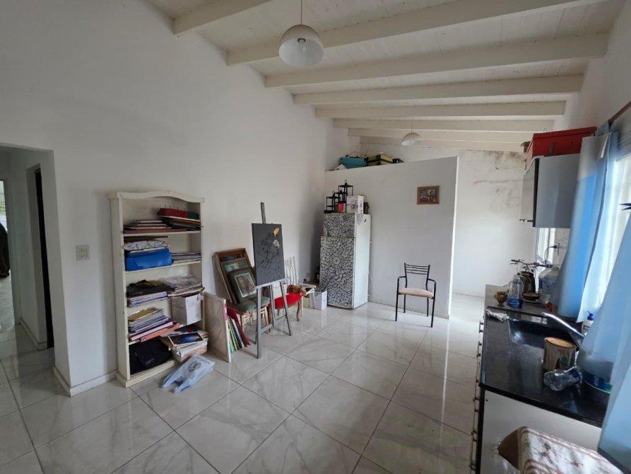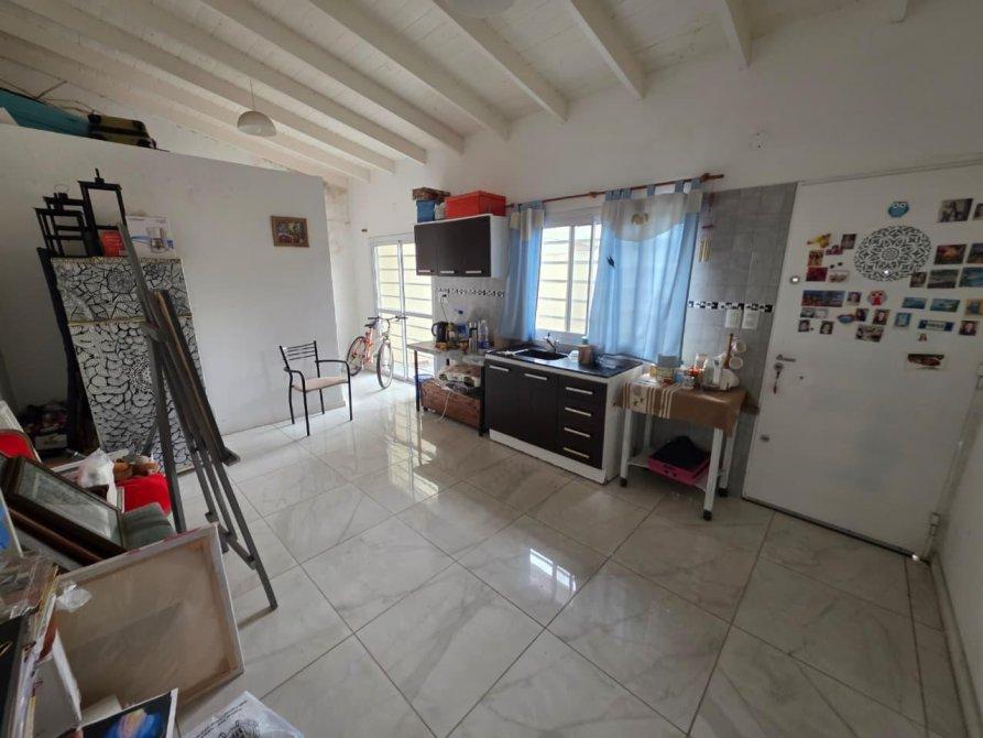 La casa de adelante: esta integrada por amplio living comedor en "L" con ventilación a patio interno, cocina comedor, lavadero interno, un dormitorios, baño, patio atás, entrada de auto y amplio jardín al frente.