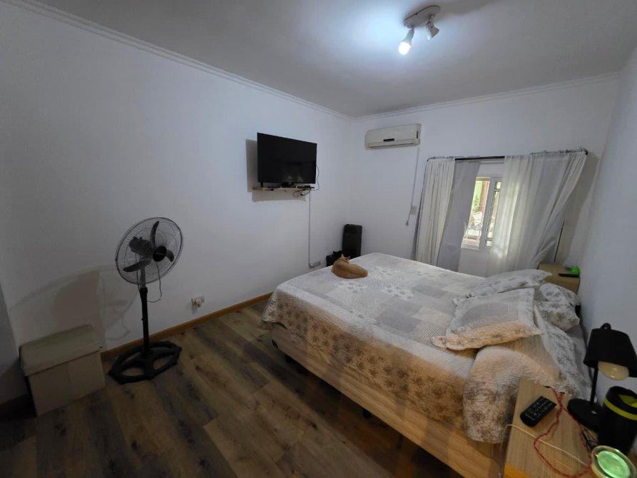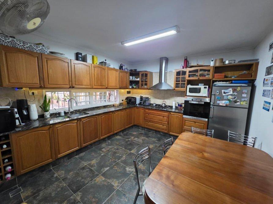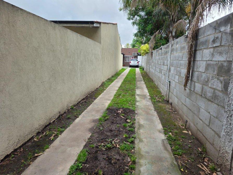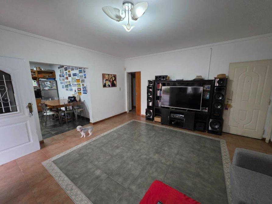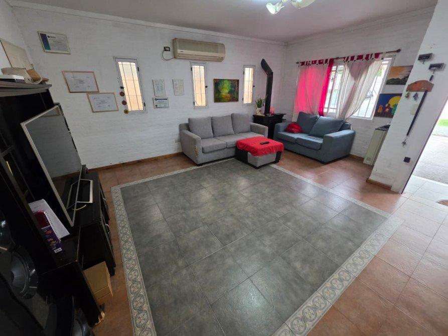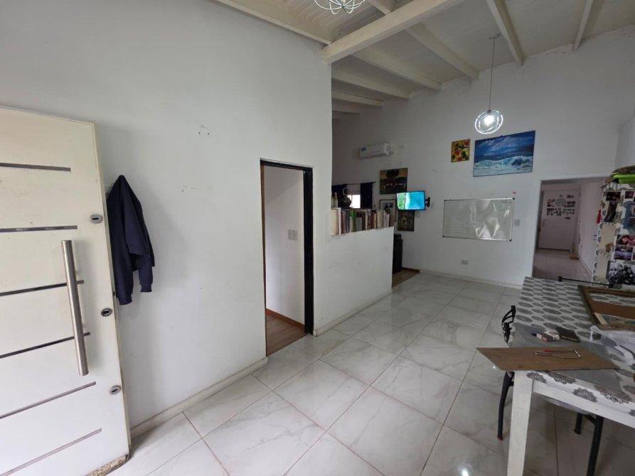 La casa de atrás: está compuesta de living amplio, cocina comedor integrados, 3 dormitorios, 2 baños, galería cubierta, entrada para varios vehículos con cochera semicubierta, y amplio fondo parquizado con pileta de fibra.
