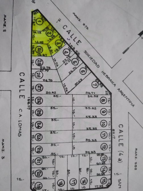 Superficie: 247 m² – lote irregular en esquina Ubicación: Sociedad Hebraica y Club Atlético Lomas (C.A. Lomas), Pilar Características:
