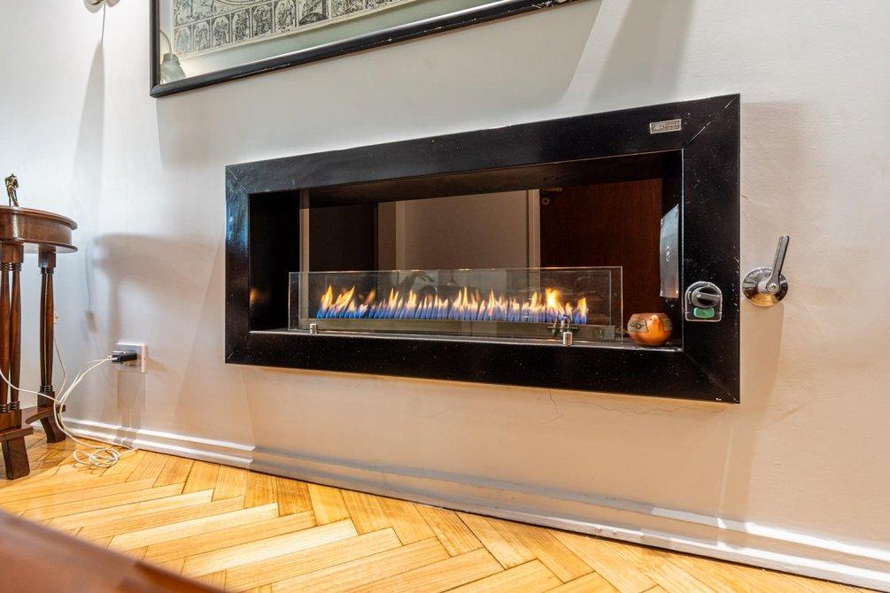 El living comedor cuenta con una hermosa estufa, perfecta para disfrutar en las noches frías.