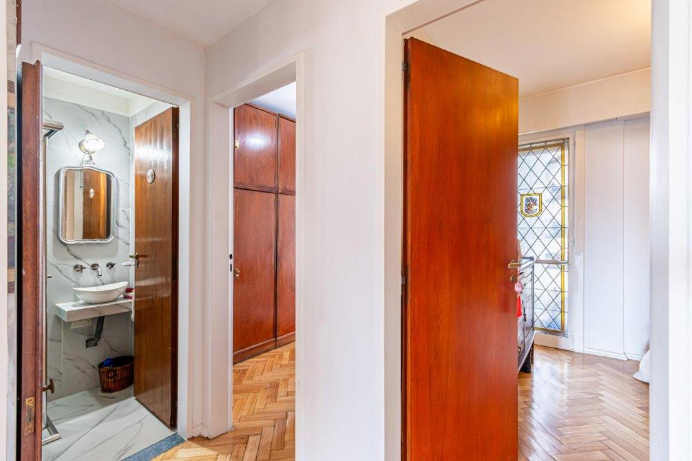 Si tomamos el camino hacia la izquierda, nos encontramos con un espacioso living comedor que tiene salida al balcón, con vista a la Avenida Rivadavia. Desde el living comedor, se accede a un pasillo en donde se encuentran  los dormitorios, que están acompañados de un baño completo y un toilette. Uno de los dormitorios posee un gran ventanal con vista a la Avenida, mientras que el otro dormitorio es  interno. Ademas hay una dependencia con placard, desde la cual, se puede acceder al lavadero.