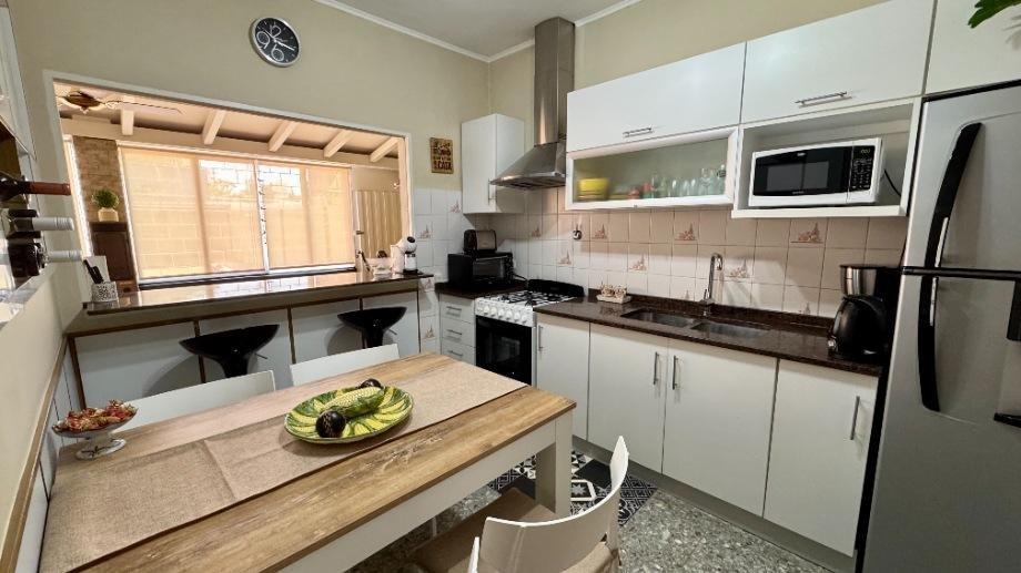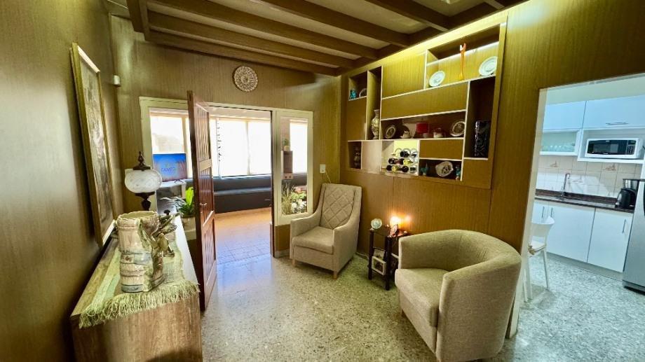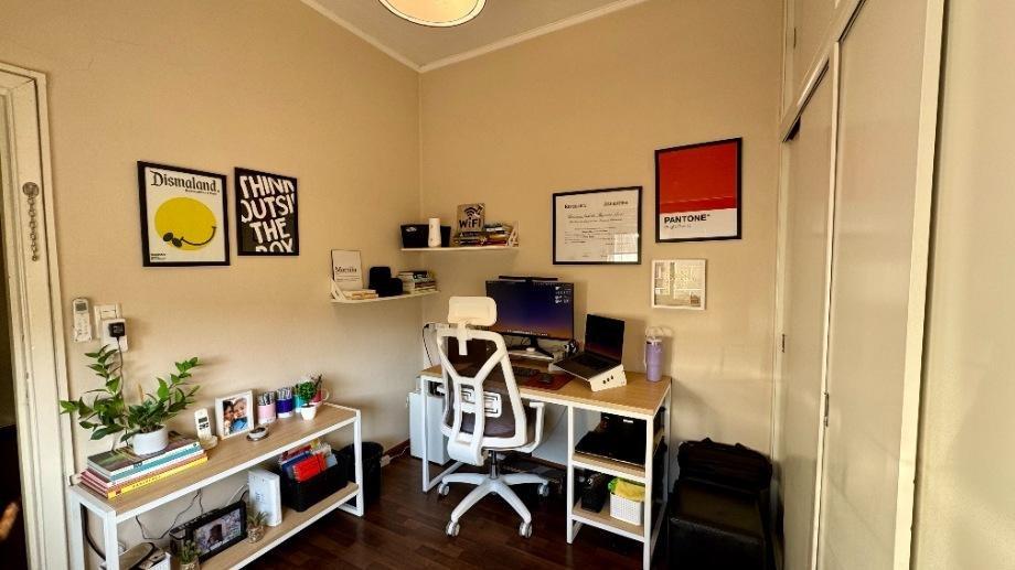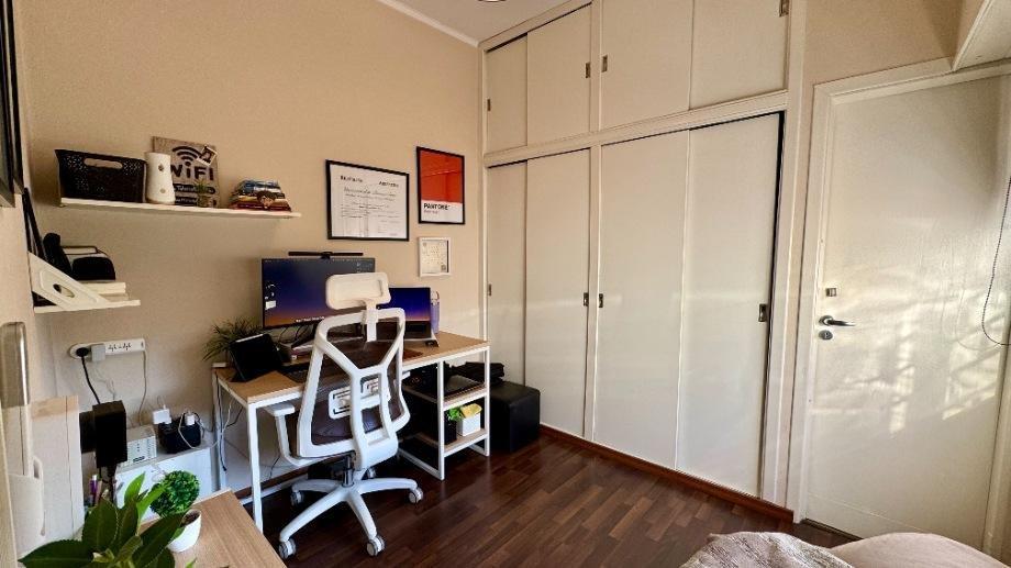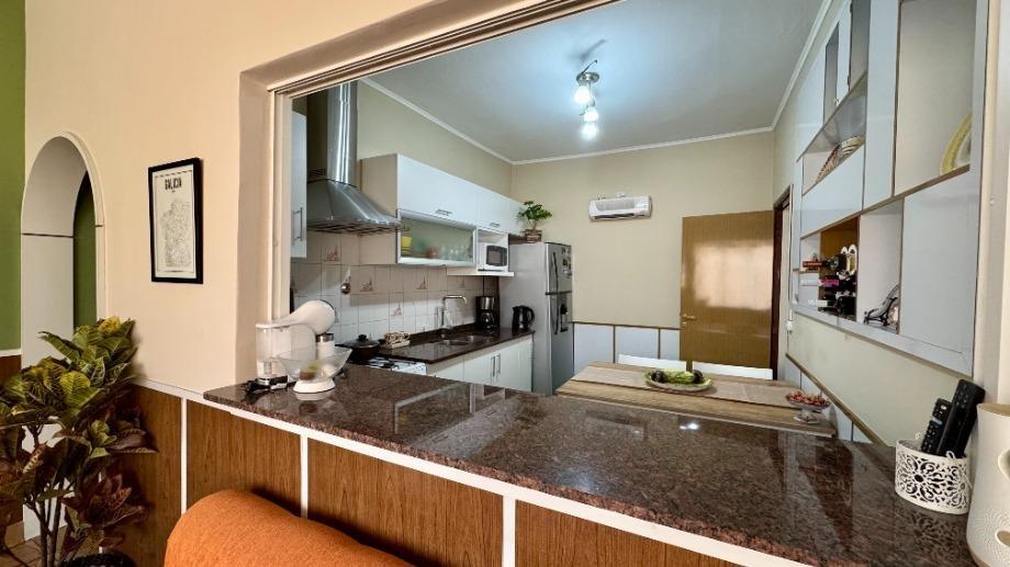 Esta compuesta de hall recibidor, recepción, living comedor, cocina reciclada a nuevo con muebles bajo mesada y alacenas con desayunador, galería cerrada o lugar de estar diario, dos dormitorios con placard y piso flotante, baño completo con ducha y mampara, escritorio o tercer dormitorio con placard y piso flotante, otro baño completo con ducha, cochera cubierta con portón automatizado, fondo libre parquizado, quincho semicubierto con parrilla, galpón y terraza.