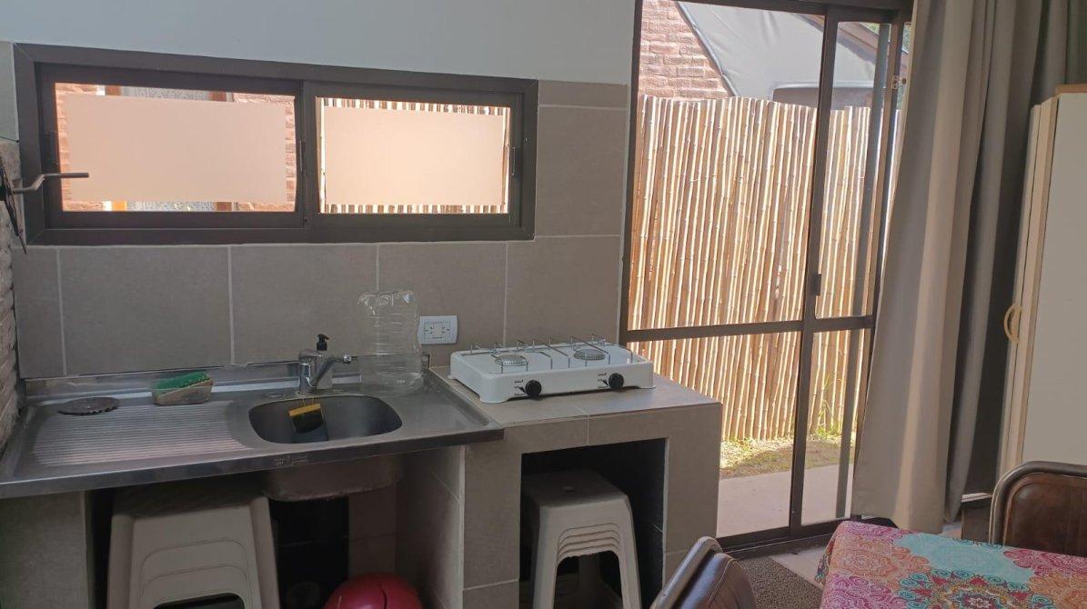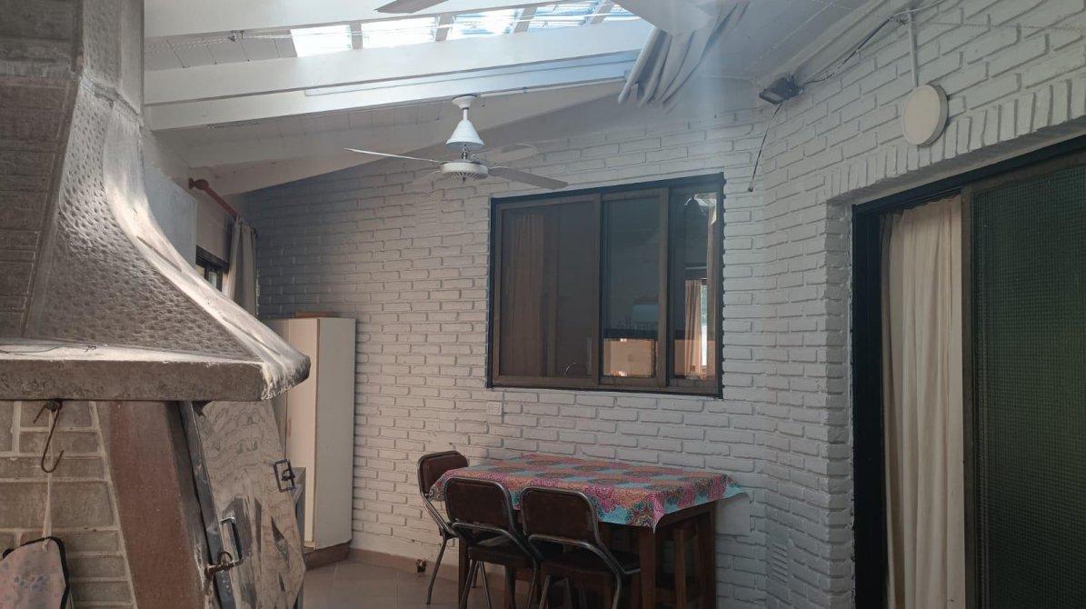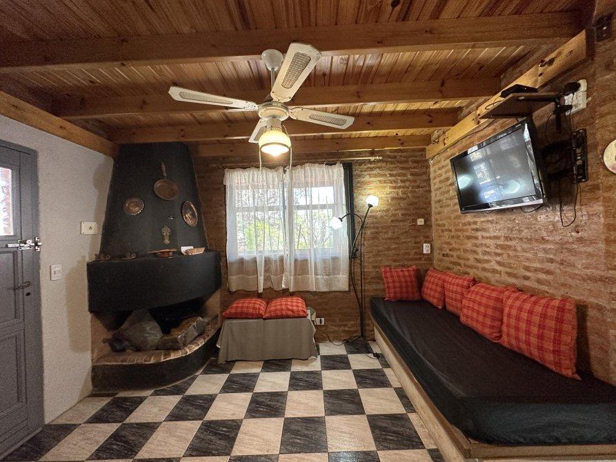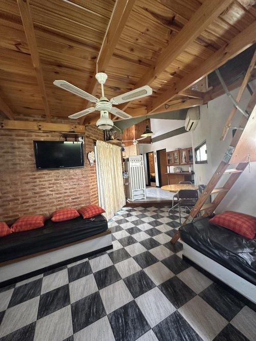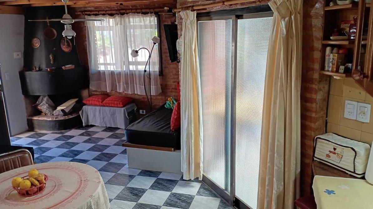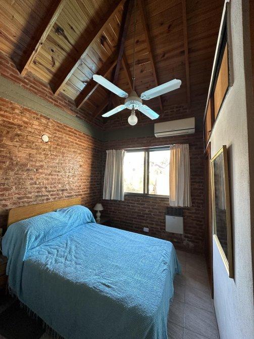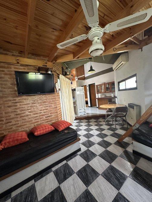 FM propiedades ofrece chalet construido sobre un lote  en una sola planta que consta de living comedor con smart tv, cocina integrada por barra desayunadora, 1 dormitorio con 2 camas , placard, ventilador de techo, otro dormitorio con cama matrimonial con A/A ventilador de techo  1  baño completo , amplio quincho en L con parrilla y ventiladores de techo, lavadero con lavarropas y baño para pileta y quincho, piscina cercada con solarium, patio.-