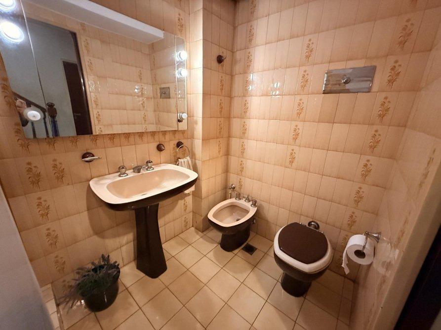 En planta baja cuenta con living-comedor con barra, cocina comedor, baño completo, habitación de servicio con lavadero y baño, fondo parquizado y cochera cubierta para 2 autos.