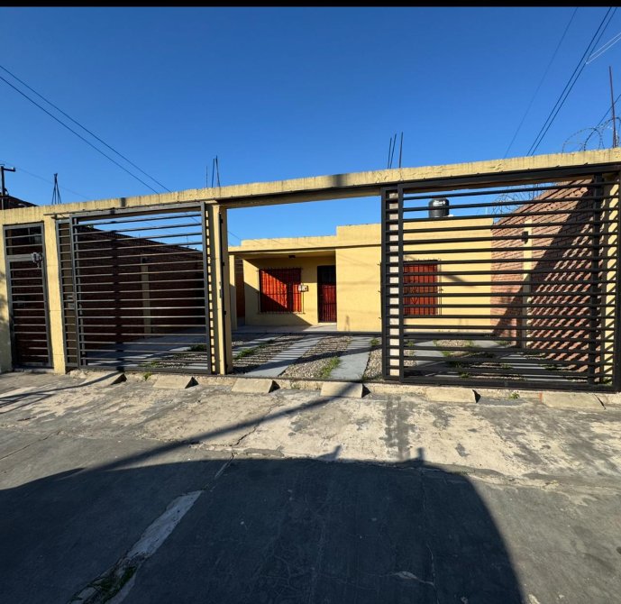 Casa con entrada de auto para tres vehículos.