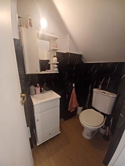 Toilette de recepción con bidet portatil instalado.