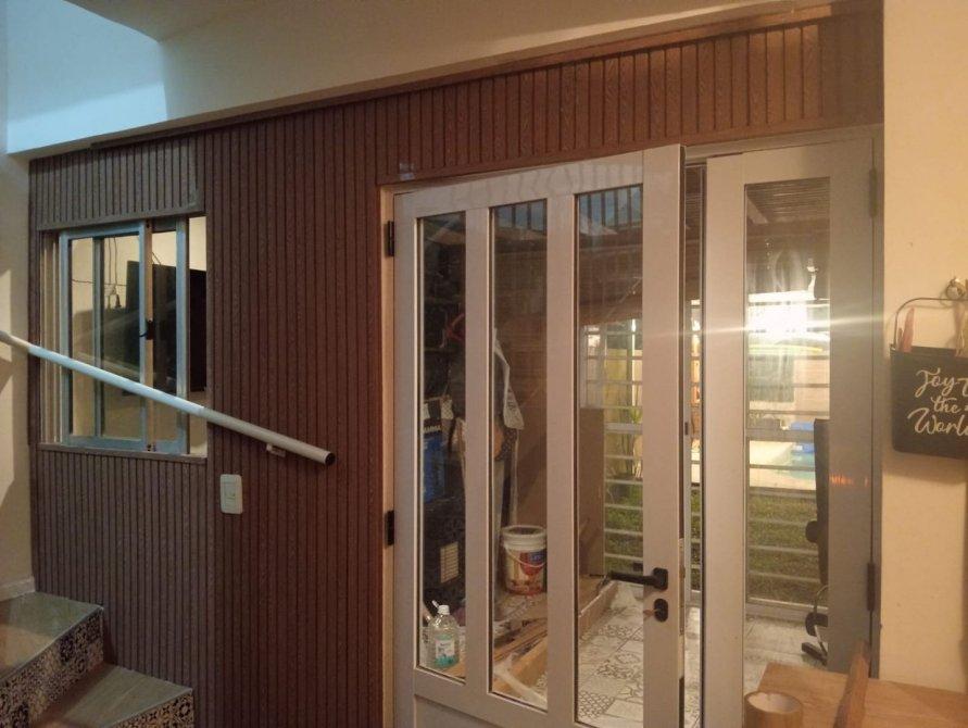 Pared de entrada y pared de salida al quincho revestida totalmente en wall panel pvc.