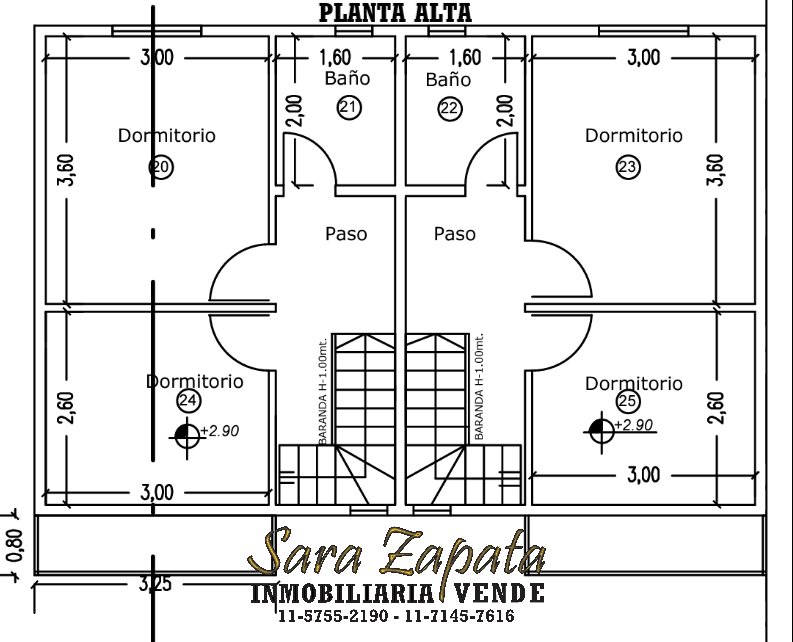 - En planta alta cuentan con DOS dormitorios, uno con balcón al frente; y UN baño completo.