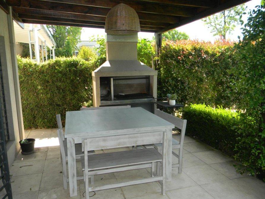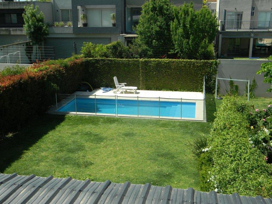 EXT: Cochera para un auto, muy buena galería con parrilla, gran jardín con pileta, juegos para niños, cama elástica.