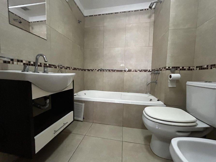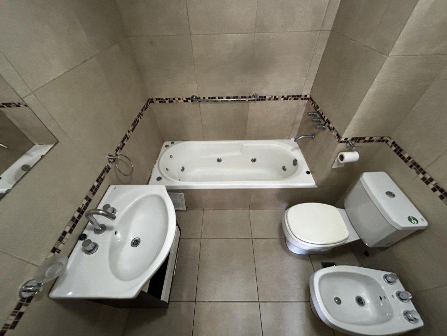 Bellísimo departamento en impecable estado con terminaciones de categoría y las comodidades que cualquier persona busca disfrutar. 3 ambientes espaciosos con ventilación cruzada , hacia el frente estar comedor de amplias dimensiones con ventanal inmenso, cocina semi integrada con mesada de granito negro, cocina eléctrica, campana extractora de acero y amoblamiento completo, desde el estar comedor la expansión hacia el frente aprovecha el espacio con un balcón semicubierto amplio con muy buena protección, que oficia tambien como lavadero y cuenta con parrilla. Hacia el contrafrente por el pasillo hacia el área privada un primer baño completo con receptáculo de ducha, el primer dormitorio amplio y luminoso con vestidor funcional, baño en suite completo con bañera con hidromasaje y vanitory , el segundo dormitorio con placard empotrado integral y muy buena luz natural . Pisos de porcelanato y revestimientos cerámicos. Equipo de aire acondicionado en el estar comedor. Agua caliente por termotanque individual eléctrico. Instalación de gas embutida sin conexión a red.