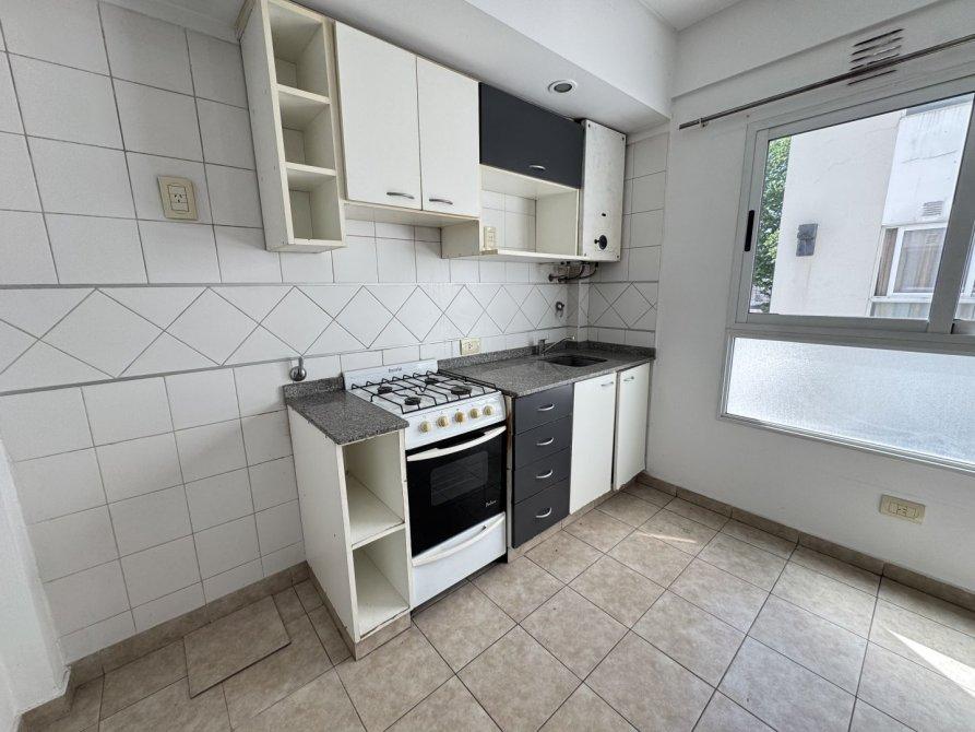 Departamento de 39 m² cubiertos, en muy buen estado de conservación. Cuenta con  cocina con muebles bajo mesada y alacena, mesada de granito con bacha de acero inoxidable, canilla mono comando, espacio integrado al living - comedor con pisos de cerámicas, doble ventana con aberturas de aluminio con vista al pulmón del edificio, espacio para lavarropas, dormitorio con placard empotrado con divisiones, abertura en aluminio y vidrio con vista al contra frente, baño completo con receptáculo, ventilación natural.