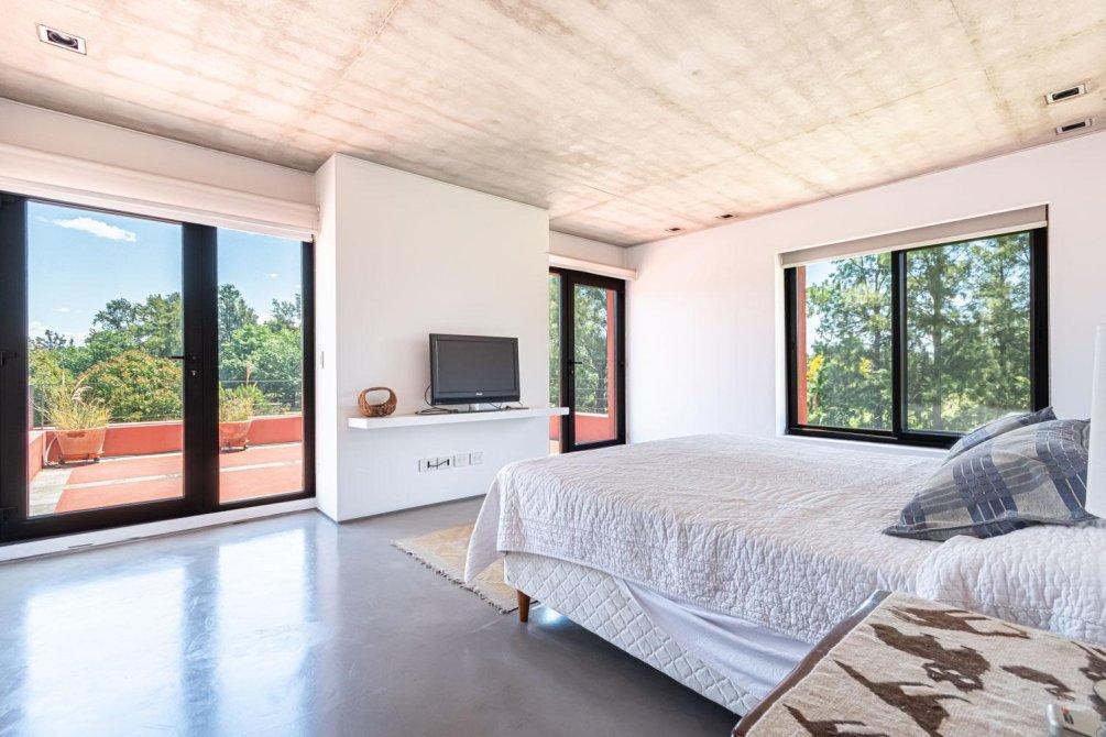 En Planta Alta hay otros 5 dormitorios divididos en 2 sectores: en el ala derecha hay un dormitorio en suite, y otros dos dormitorios con su baño completo. Y sobre el ala izquierda, con otra puerta de ingreso, hay un dormitorio con su terraza propia y vista al verde, y otro dormitorio de generosas proporciones; ambos comparten un baño con ducha, bañera y tocador.