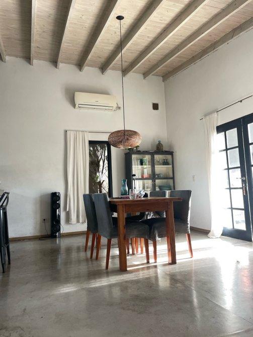 Desde el momento en que cruzas la puerta antigua, te envuelve la calidez de su estilo entre campo e industrial. El living íntimo y funcional es el espacio ideal para relajarte, mientras que el comedor de techos altos con una barra impresionante te invita a celebrar momentos inolvidables con amigos y familia.