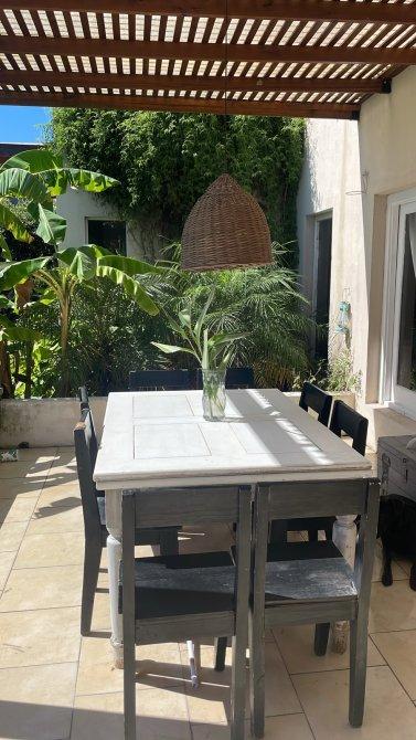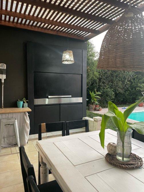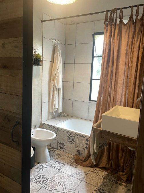 La suite principal, con su baño privado y amplio placard, te conecta directamente con el jardín y una encantadora pérgola, creando un santuario personal al aire libre.
