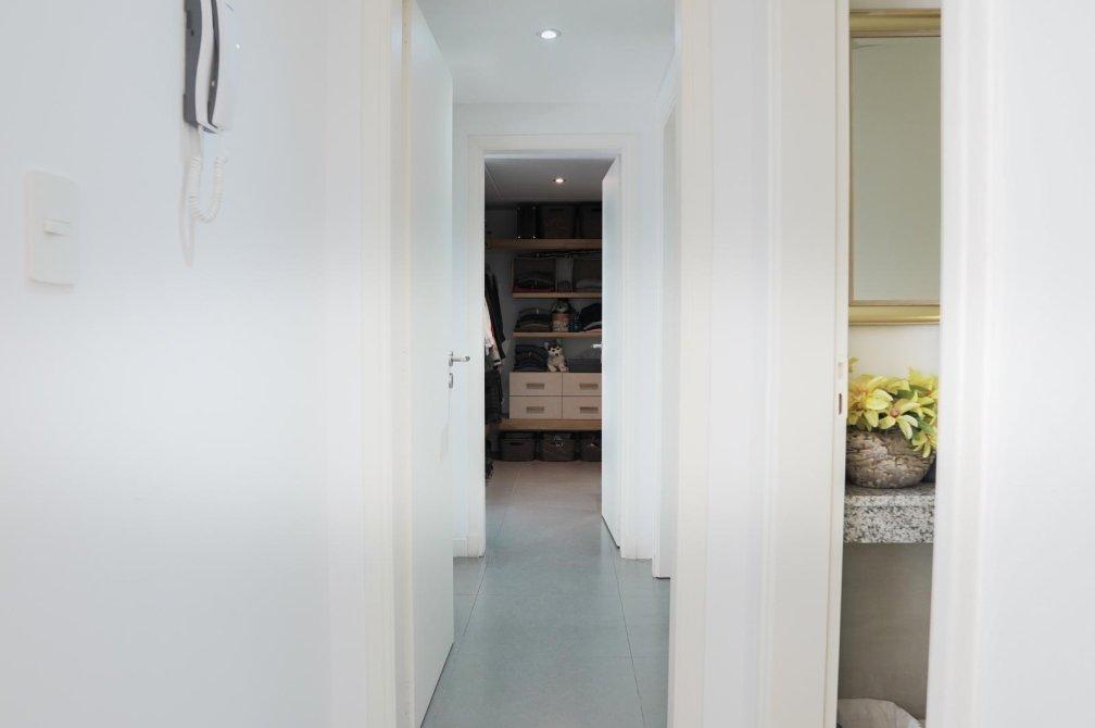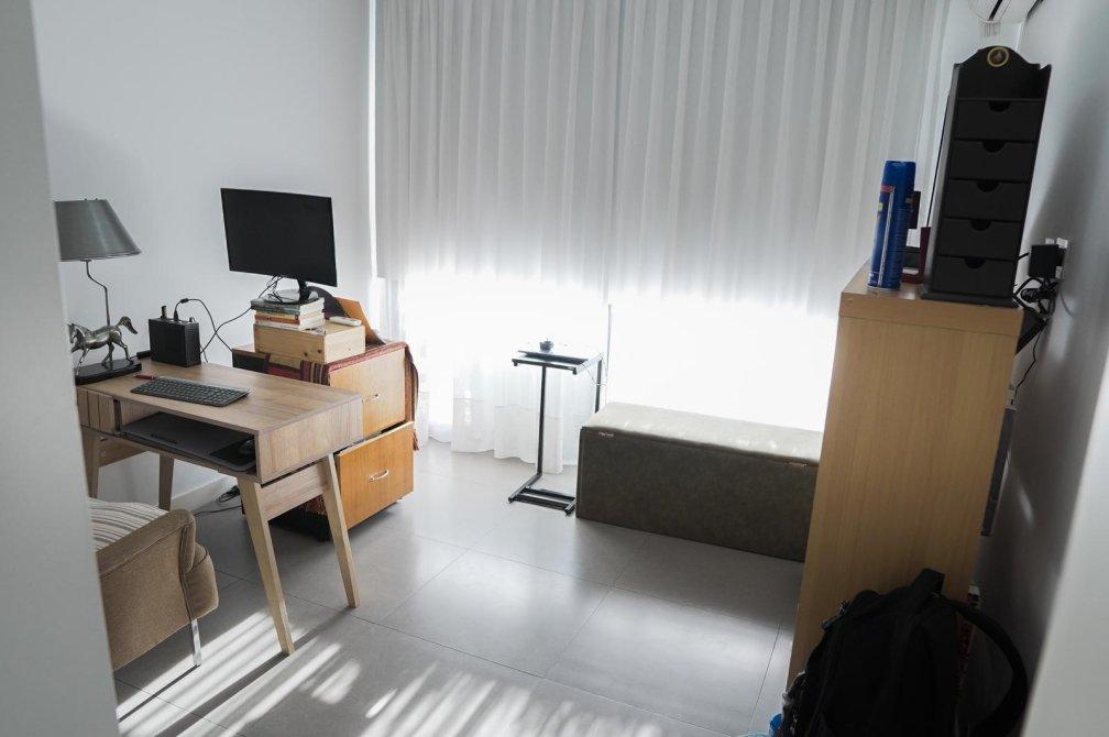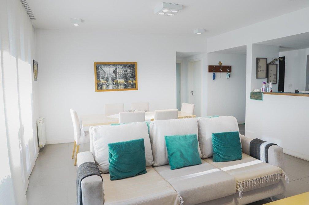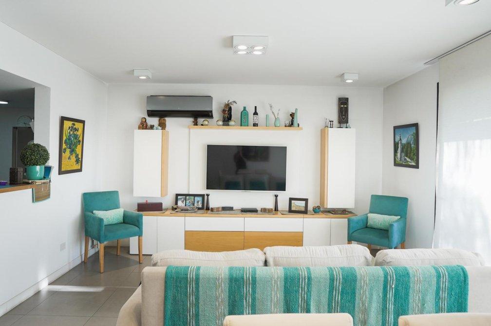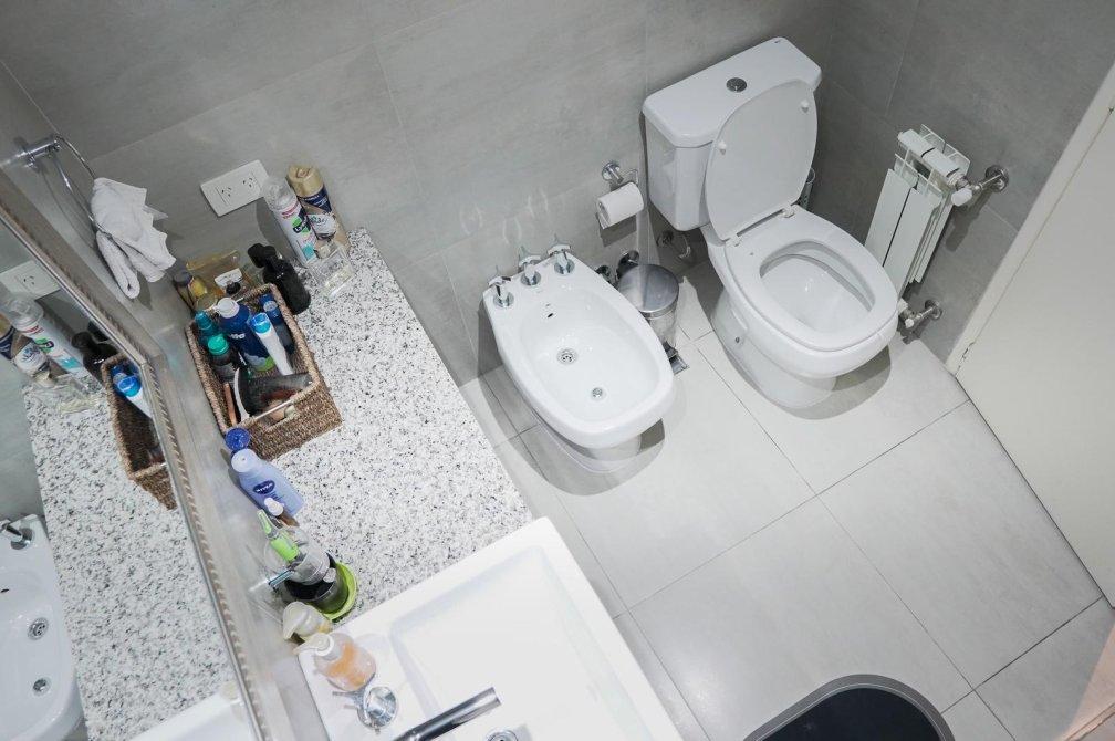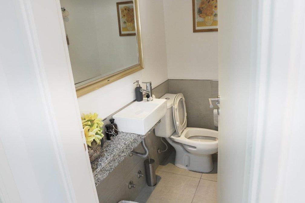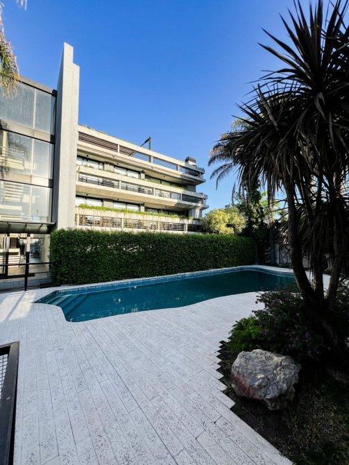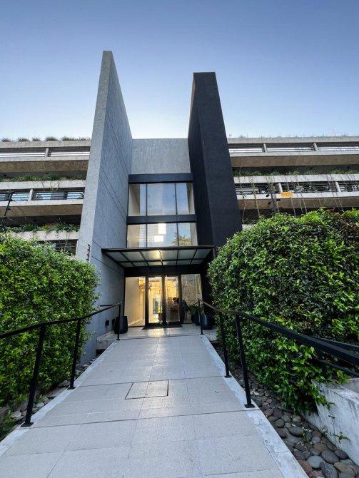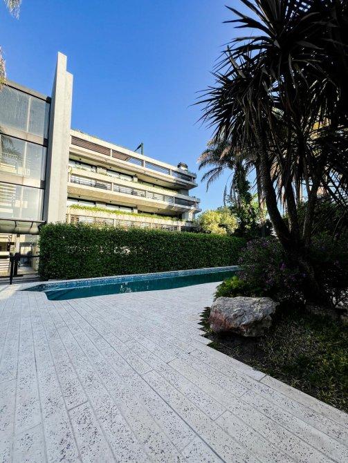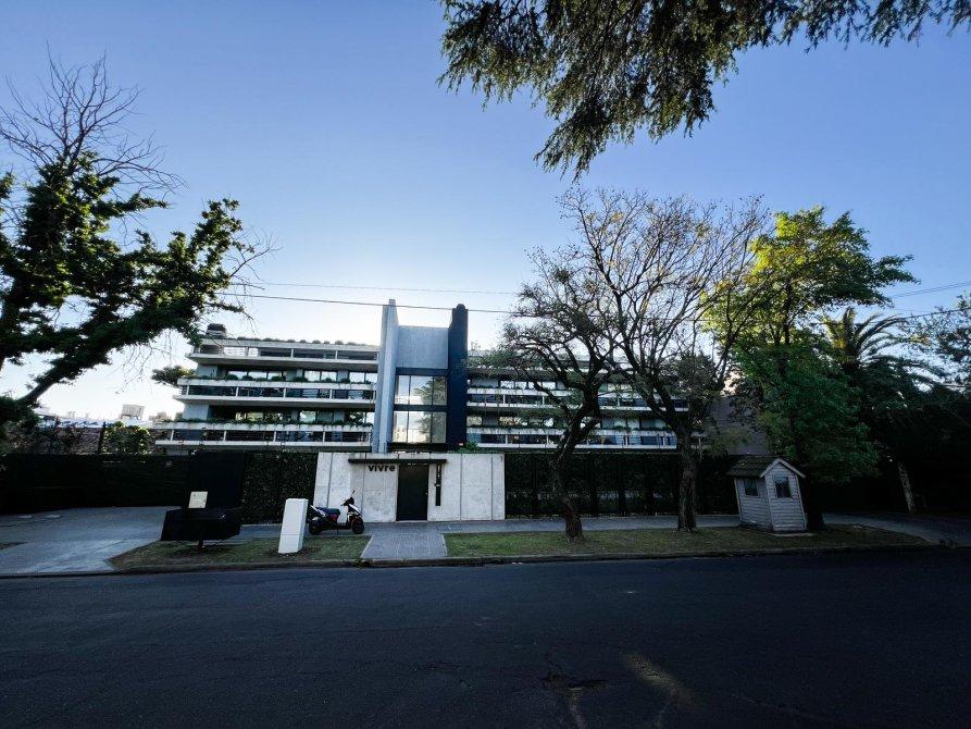 La unidad cuenta con un dormitorio principal en suite que incluye un vestidor, un segundo dormitorio con placard, un baño completo con bañera y un toilette de recepción. El gran atractivo de este departamento es su amplia terraza privada de 100 m² con parrilla, ideal para disfrutar de reuniones al aire libre en un entorno verde único.