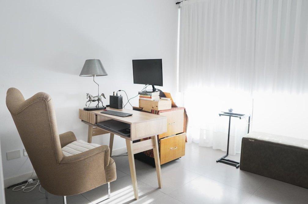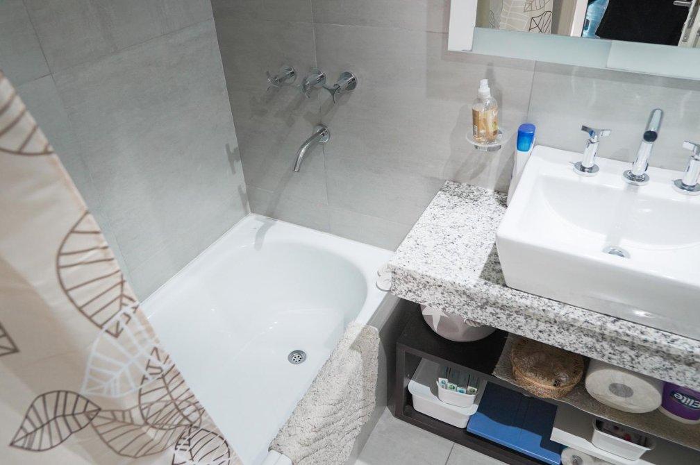 Entre las características de calidad del departamento se incluyen aberturas de piso a techo con DVH (doble vidrio hermético), agua caliente central y calefacción por radiadores en todos los ambientes. La entrega es inmediata y el edificio cuenta con amenities como piscina y salón de usos múltiples (SUM).