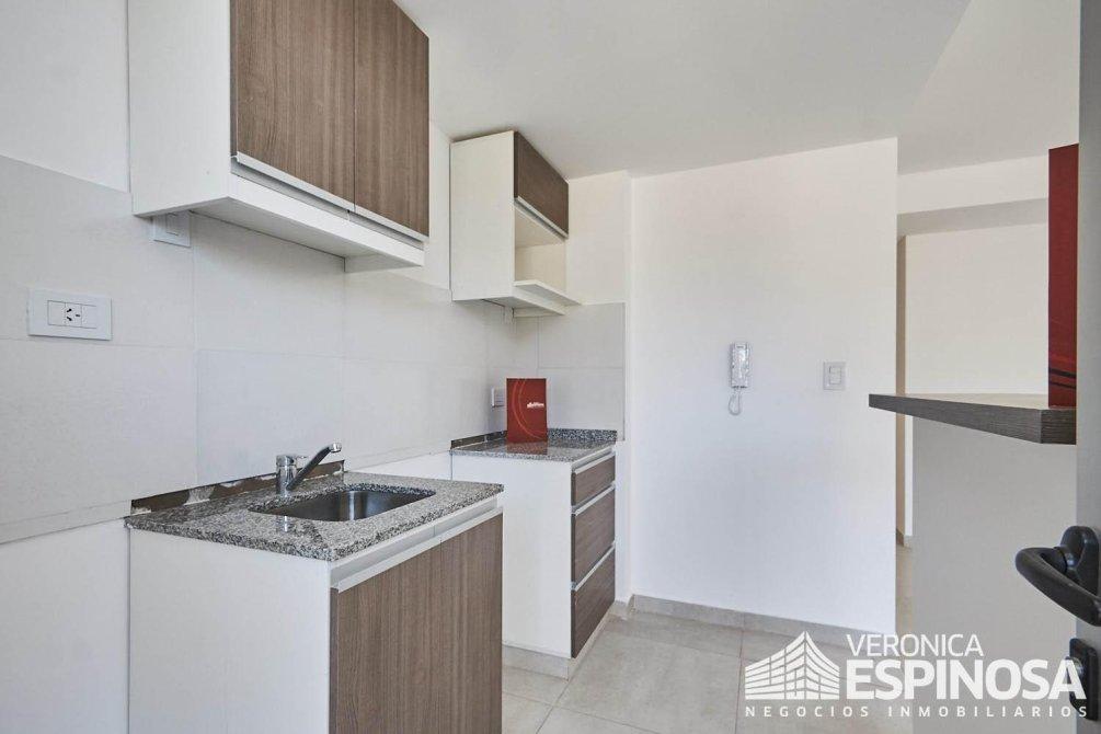 El departamento esta en un cuarto piso al frente, que tiene un balcón super cómodo con acceso desde el living y desde la cocina. La cocina esta separada por una isla o denominado pasa platos, desde el living pasamos a un baño completo, y asi al dormitorio que cuenta con placar con su interior.