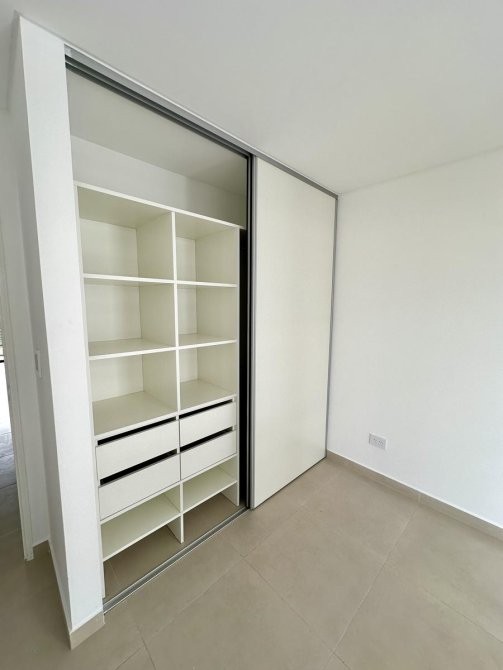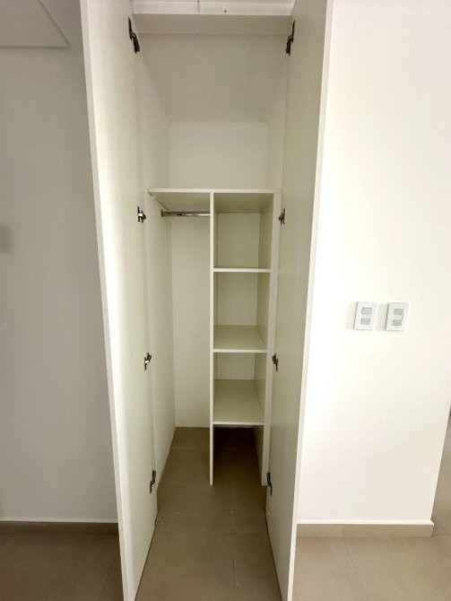 El dormitorio cuenta con un placard integral tipo americano en melamina y su interior está completamente equipado. El baño es completo, con artefactos sanitarios de primera calidad, incluyendo inodoro con depósito exterior, bidé y vanitory.Los pisos de porcelanato, el sistema de agua caliente central, y los vidrios de seguridad son solo algunas de las características que garantizan una vida cómoda y segura.