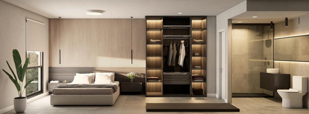 Se ingresa por estar-comedor, con salida a balcón. Cocina con muebles melamínicos de alta gama, mesada de cocina estilo Silestone. Continua hacia un dormitorio en suite con vestidor, toilette. Segundo dormitorio con placard, ambos con frente de placard laqueado.