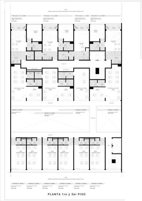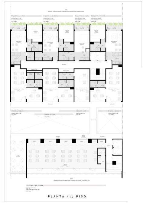 Las oficinas del contrafrente cuentan con depósito y oficina privada. La del 4to piso cuenta con 160m2 y terraza de uso exclusivo.