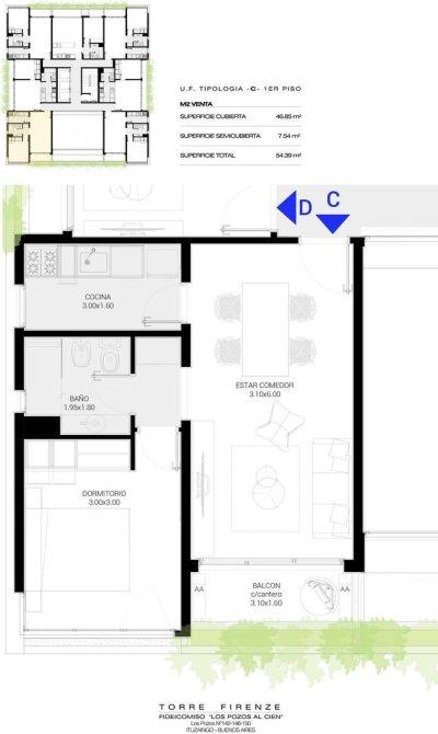 El proyecto Torre Firenze , se desarrolla sobre 9 pisos con unidades de 2 y 3 amb todas con cochera y balcón , cuenta con 2 subsuelos para un total de 66 cocheras y dos locales comerciales en planta baja.Del primero al sexto piso podremos encontrar todas unidades 2 ambientes de 53m2 a 62m2 aproximados y del séptimo al noveno piso unidades de 3 ambientes de 84m2 aproximados.
