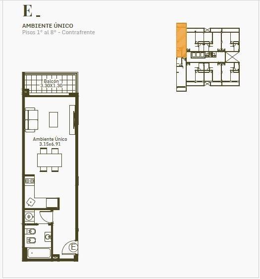 UNIDAD DE DOS AMBIENTES AL CONTRAFRENTE CON BALCÓN.