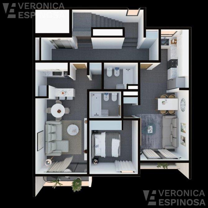 Diseñados para maximizar el uso del espacio, estos modernos monoambientes cuentan con un amplio living comedor con pisos de porcelanato, ventanas con doble vidriado hermético (DVH) para mayor aislamiento, preinstalación de aire acondicionado y estufa a tiro balanceado para tu confort durante todo el año. La cocina, completamente equipada, incluye mesada de mármol negro y muebles bajo mesada y alacena. El baño, con box de ducha, es elegante y funcional.