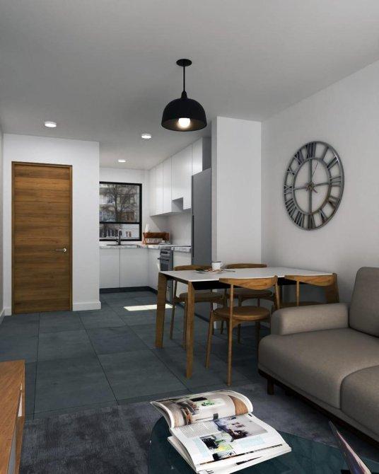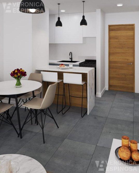 Diseñados para maximizar el uso del espacio, estos modernos monoambientes cuentan con un amplio living comedor con pisos de porcelanato, ventanas con doble vidriado hermético (DVH) para mayor aislamiento, preinstalación de aire acondicionado y estufa a tiro balanceado para tu confort durante todo el año. La cocina, completamente equipada, incluye mesada de mármol negro y muebles bajo mesada y alacena. El baño, con box de ducha, es elegante y funcional.