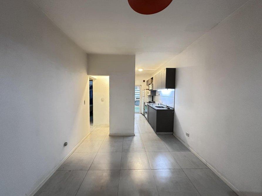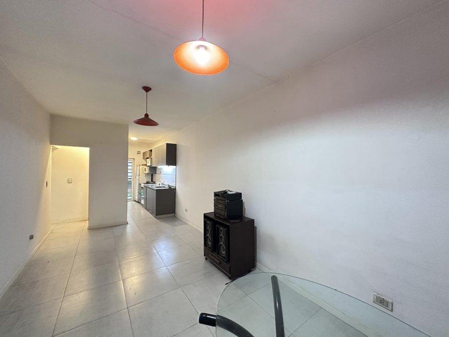 La propiedad cuenta con ingreso por living-comedor, y cuenta con cocina semi-integrada con salida a patio con cochera, dos dormitorios y un baño completo.
