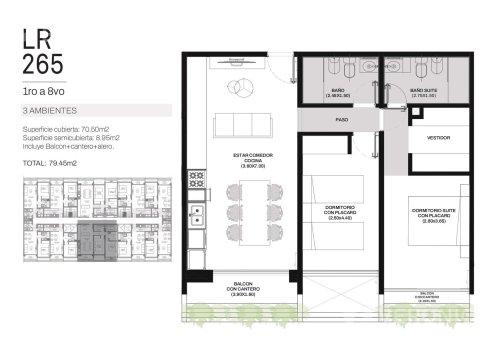Superficie total 79m2